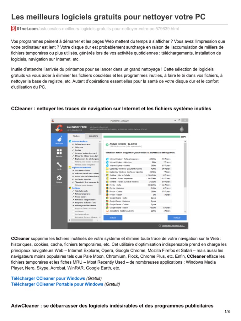 01net Com Les Meilleurs Logiciels Gratuits Pour Nettoyer Votre Pc